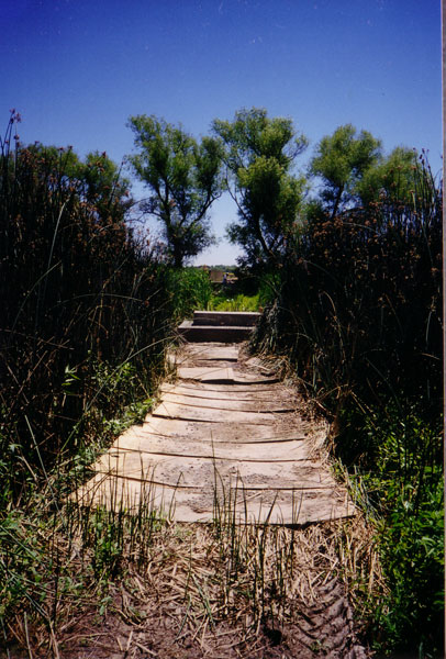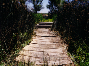 Low Impact Wetland Construction - Bridge abutment constructed on marshland. Light weight vehicles used on temporary surface leave a light footprint.