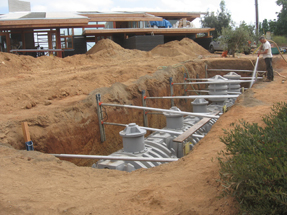 Rainwater and Gray Water Cisterns - 10,000 gallons of roof rainwater storage connected to the drip irrigation system, watering drought tolerant landscaping