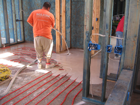 Radiant Floor heating - Floor coils with light weight concrete being poured In floor radiant heating the most efficient and comfortable way to heat a living space.