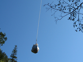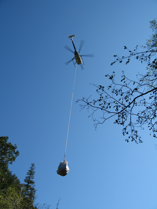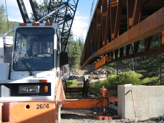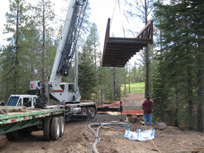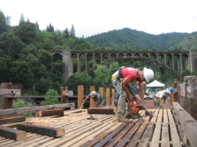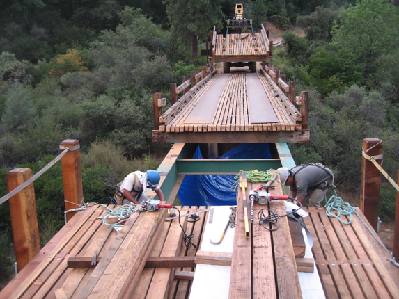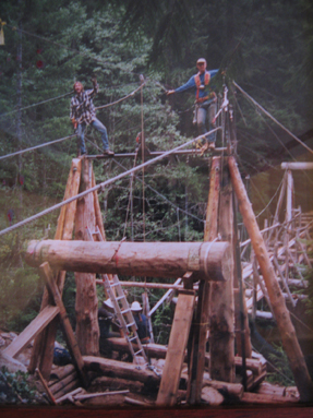 Rebuilding log suspension bridge- Canyon Creek, WA